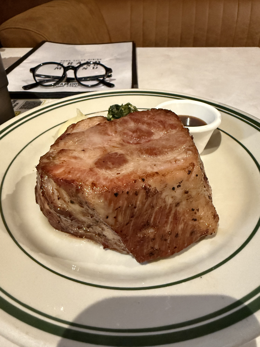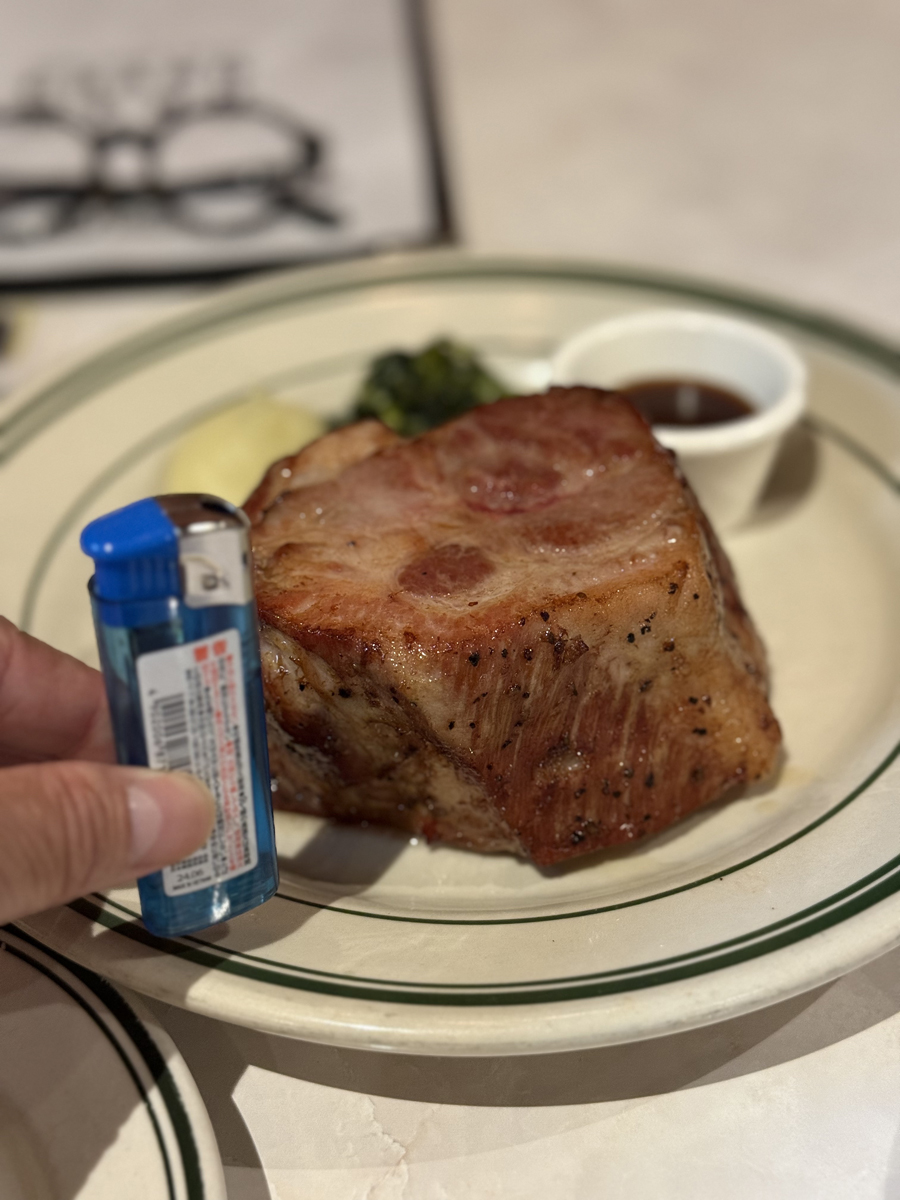 外はしっかり焼かれて中はジューシー食べ応えは十分です。最初食べた時、豚のステーキってこんな美味しいんだと感動しましたが、久しぶりに食べるとやっぱりとんでもなくうまい!
