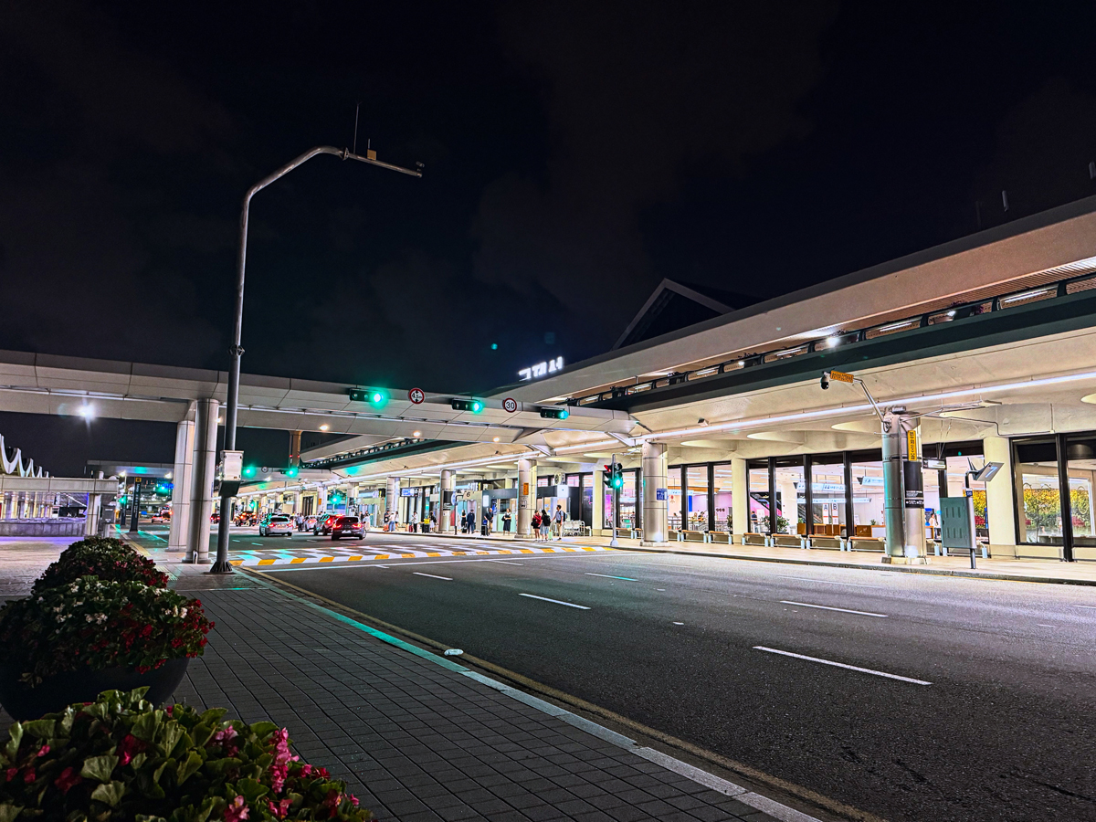事前に電子入国申請をオンラインで e Arrive を済ませていたので、税関申告書を書くことなく入国できました。入国後とりあえず一服ということで、空港を出たこのあたりに喫煙所があるので、とりあえず一服して気持ちを落ち着かせます。