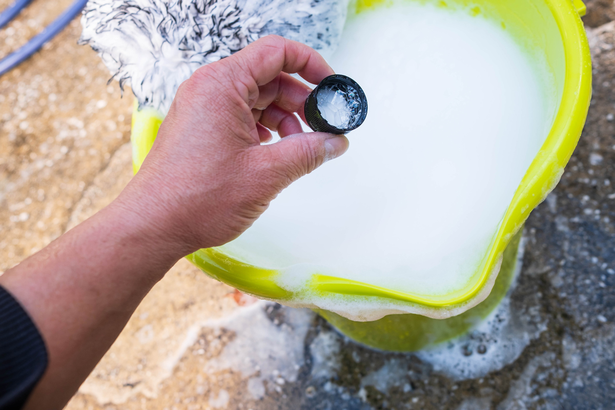 キャップで計量して正確に入れる事も、ボトルから直接注ぐこともできます。液体はさらっとしていて、普通のカーシャンプのような感じ。香りも多少ありますが、食卓洗剤のような香りがしました。